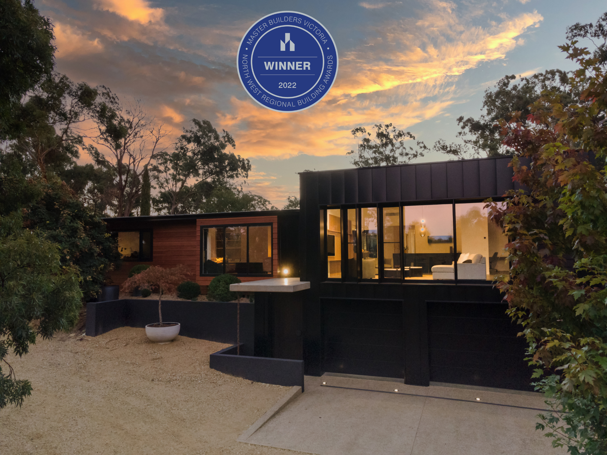 | Key features: Lysaght Enseam cladding, black butt cladding, thermally broken double-glazed windows, Cemintel Barestone, Remco Coverstar, Centor retractable flyscreens, Burnished concrete slab, Mark Douglass Design lighting, Victorian Ash floorboards, American oak cabinetry, Neolith manufactured stone benchtop. | |