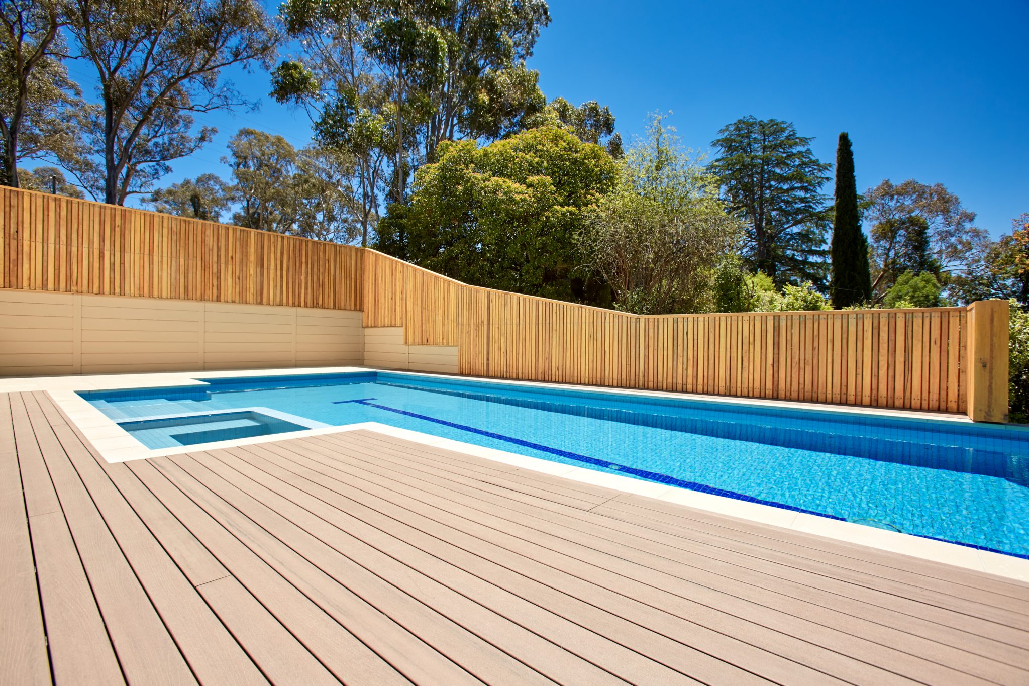 Key features: Modwood decking and pool fence, cantilever pool