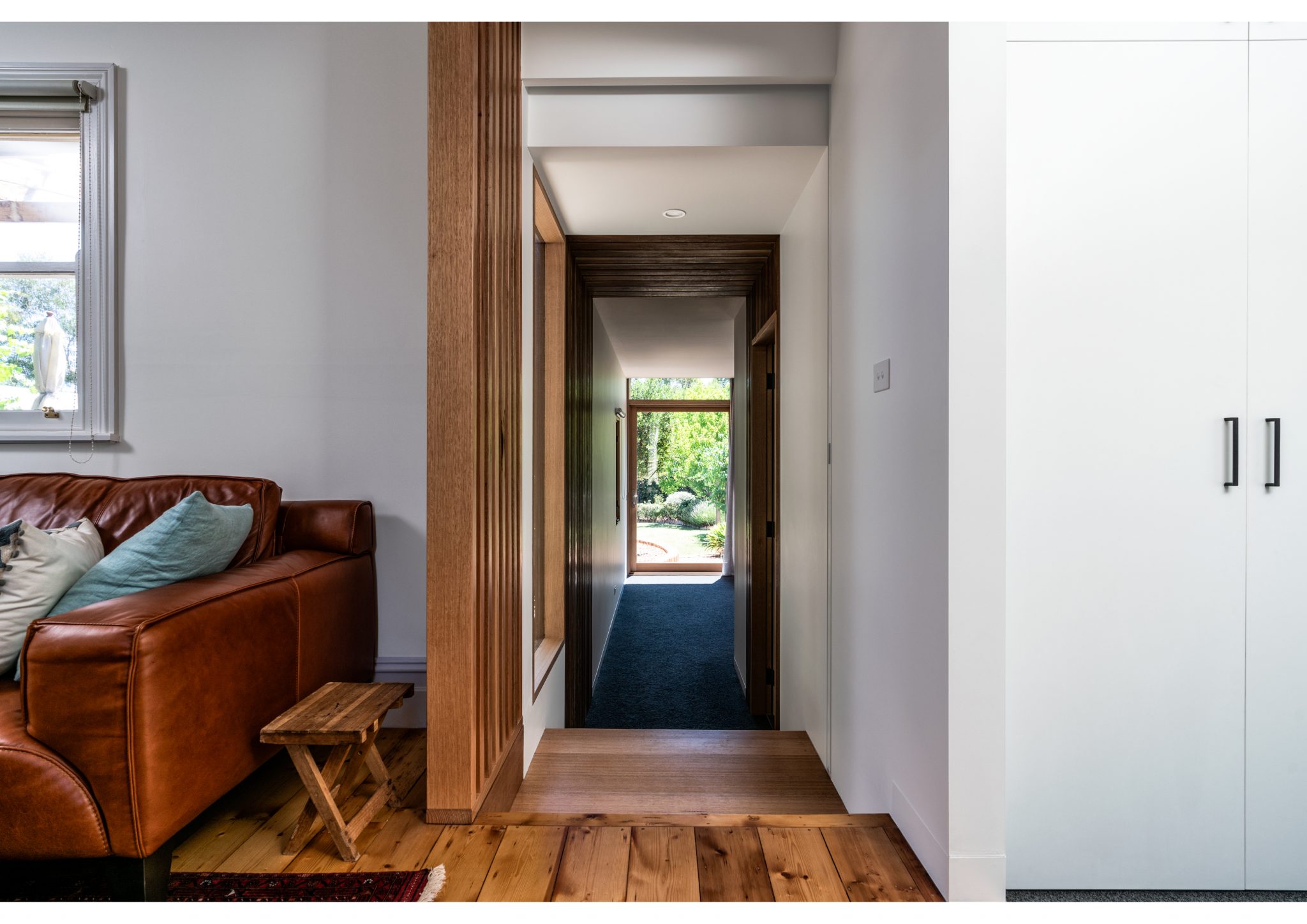 Designed to optimise natural light and complement the established garden, the addition included a bedroom, en suite and reconfiguration of the existing study.