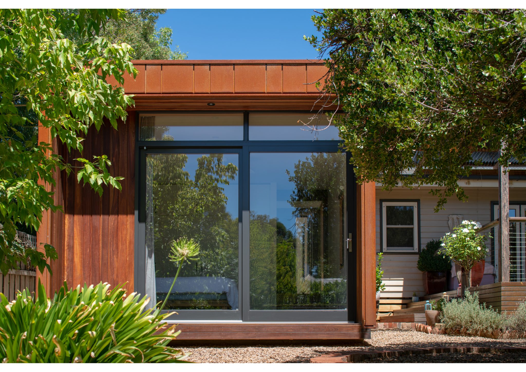 Key features: Sustainable design, Miglis double-glazed windows, Corten steel, cantilever slab, concealed doors and timber cladding.