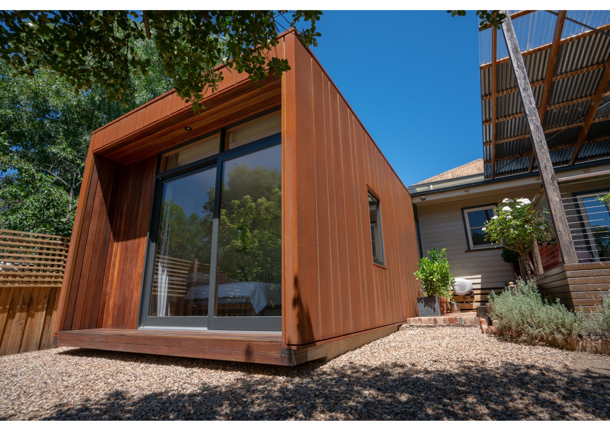 The client’s brief for this job was for a spacious, contemporary parent’s retreat, with a focus on minimalism and quality. The new Corten ‘pod’ was constructed over a cantilever slab as an extension to the previously renovated Victorian house.